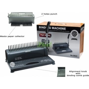 A Comb Binding Machine, also known as a comb binder, is a tool for binding documents securely. It works by punching holes along the paper’s edge and then threading a plastic comb binding spine through these holes. This is one of the office equipments that is very commonly use in many offices and even schools.