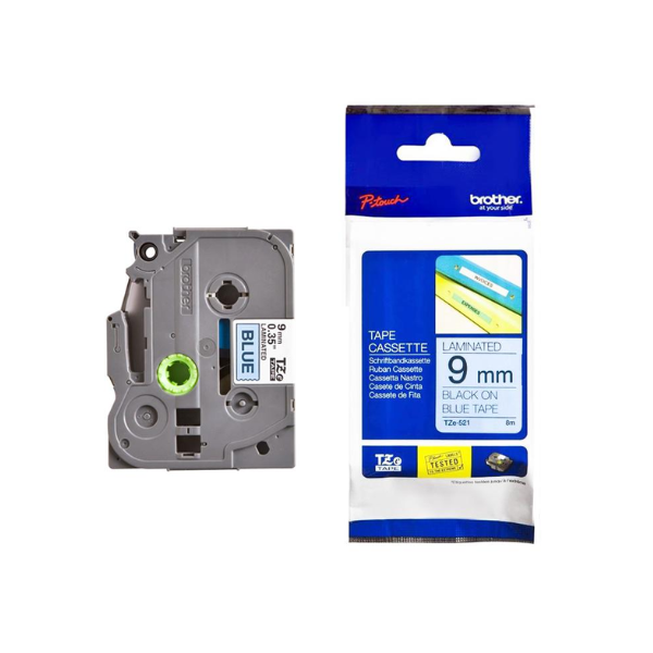 Compatible with a wide range of Brother’s P-touch printers, this genuine laminated TZe-521 labelling tape cassette is especially versatile thanks to its easy-to-read black and Blue colour – so it comes in useful around the home, office and in other workplaces.