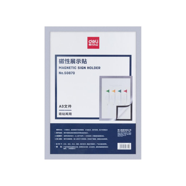 - Package Content: 1 x Deli Magnetic Frame A3 50870 – Silver