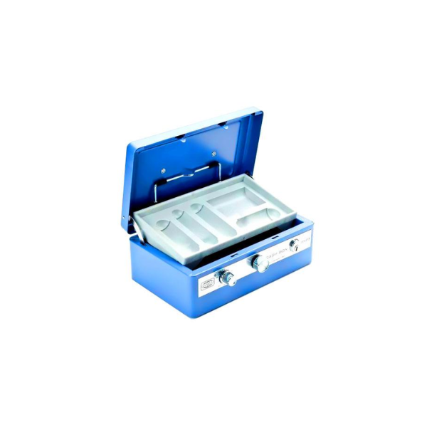 All metal construction with rounded corners for durability. Heavy guage seamless steel. Ideal for cash, coins, jewelry, and valuables. Colour will be issued randomly.